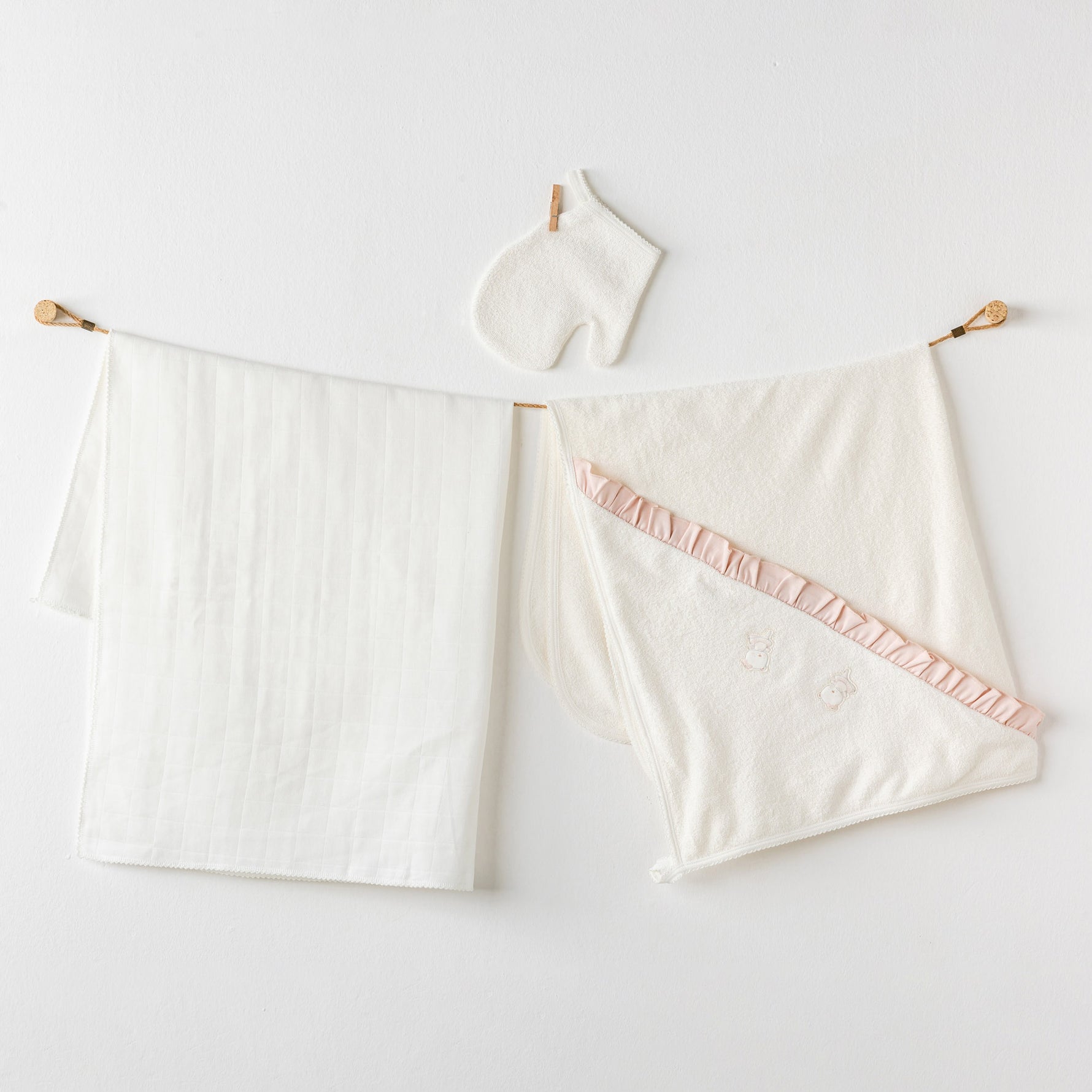 This high-quality muslin set with a beautiful ballerina print is the perfect addition to your nursery. Made with soft, breathable fabric, it provides comfort for your little one and is easy to care for. Transform your baby's room into a whimsical wonderland with this adorable set.