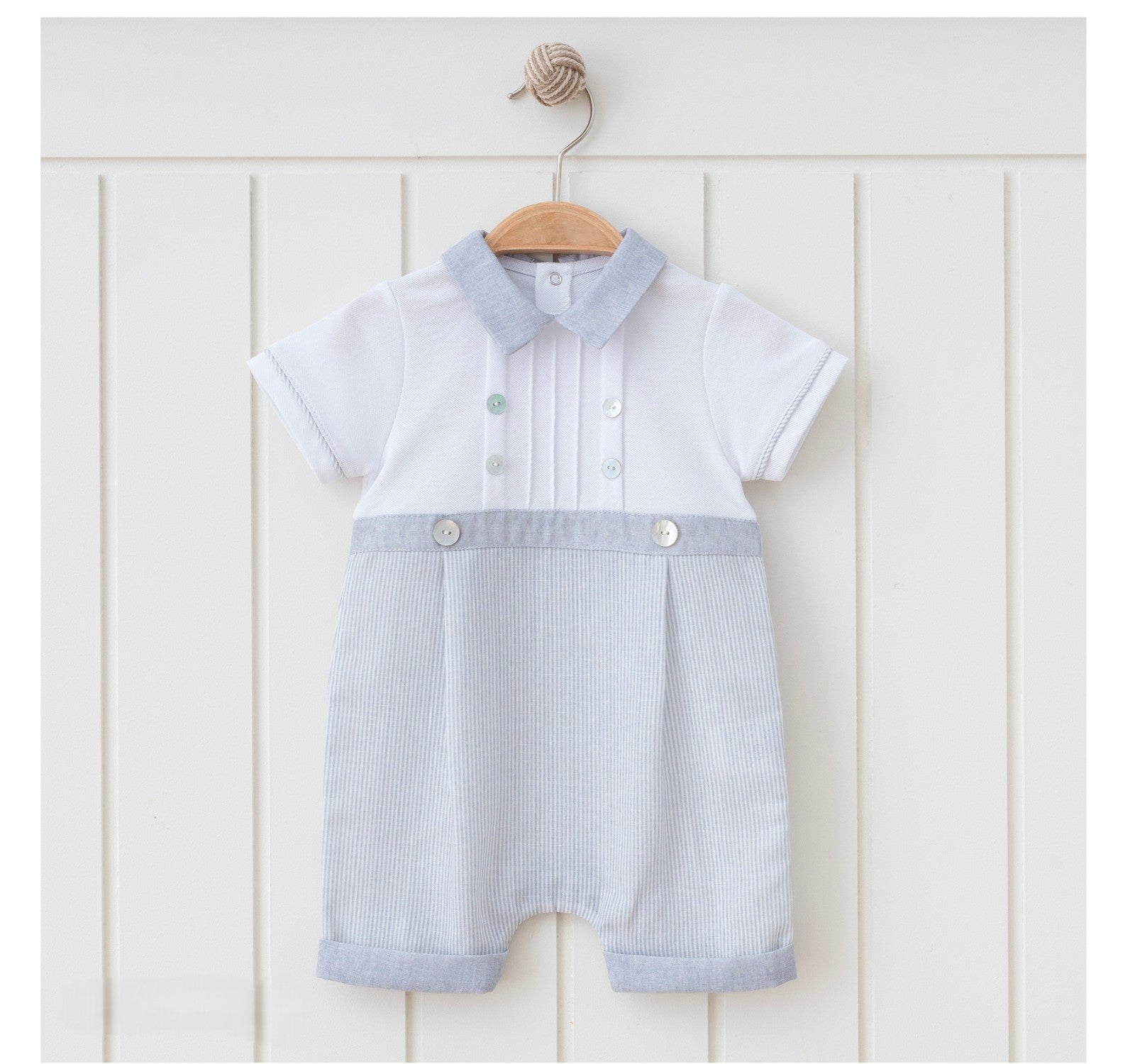 Stay cool and stylish with our Light Blue Romper for boys. Featuring a comfortable collar, this romper is perfect for any occasion. Made with light blue fabric, it offers a crisp and clean look. Boost your little gentleman's fashion game while keeping him comfortable.