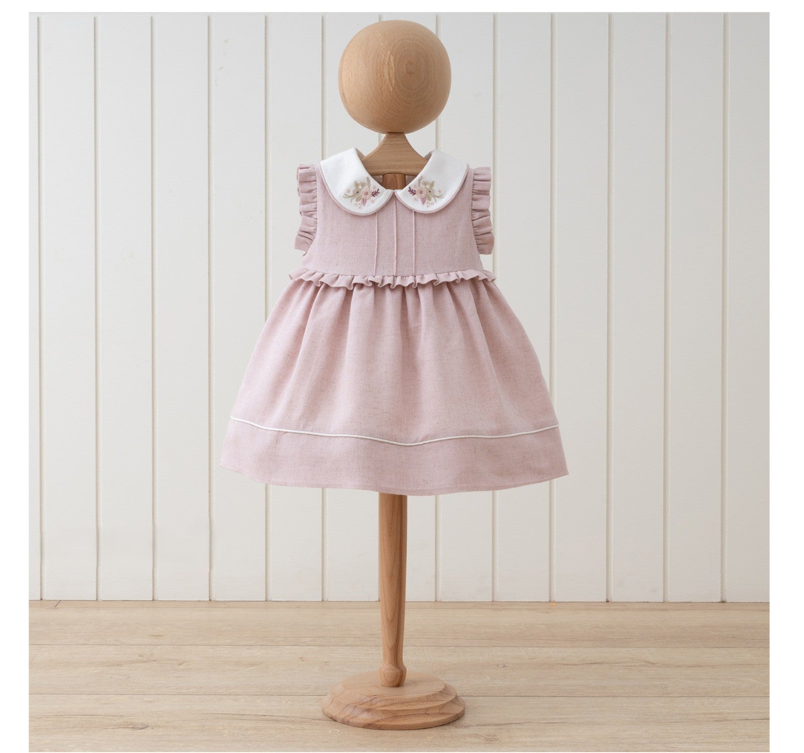 This pink collared linen dress is perfect for any young girl. Made with quality linen, it offers both style and comfort. The dress features a lovely pink color and a classic collar, making it a versatile addition to any wardrobe. Give your little one a fashionable and comfortable look with this dress.