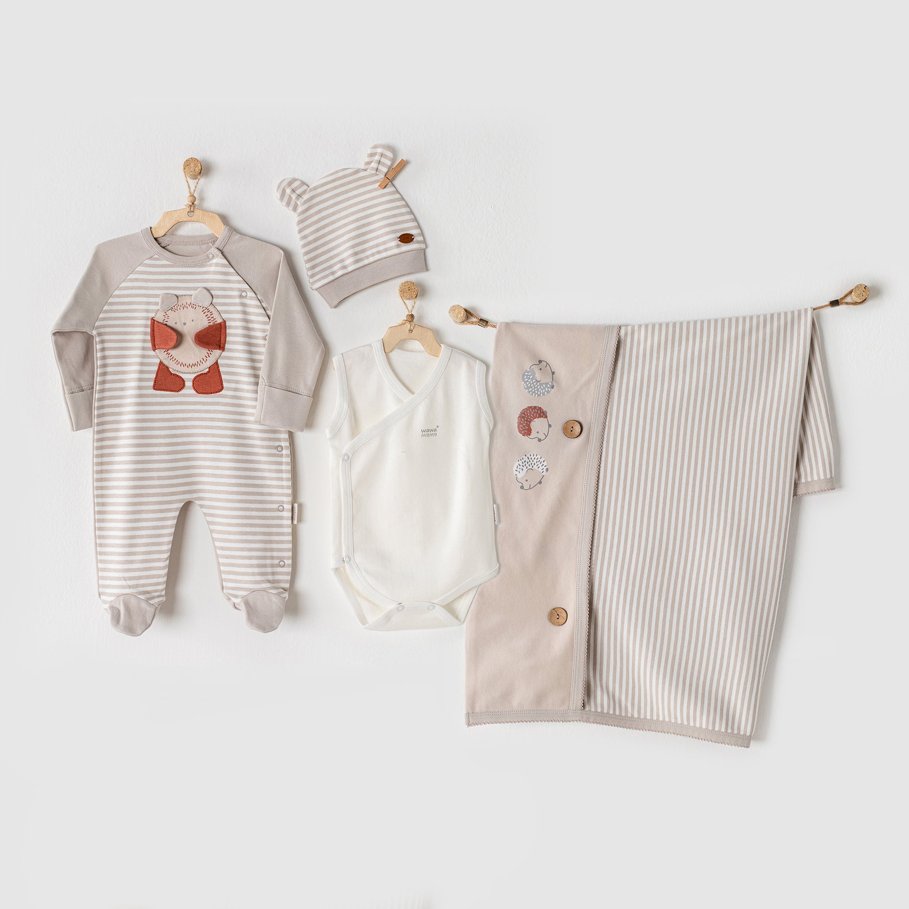 Introducing our 4-piece newborn tulle set made from organic fabric. The perfect choice for your little one's delicate skin. Soft, breathable, and hypoallergenic, this set provides ultimate comfort and peace of mind. Keep your baby stylish and safe with our certified tulle set.