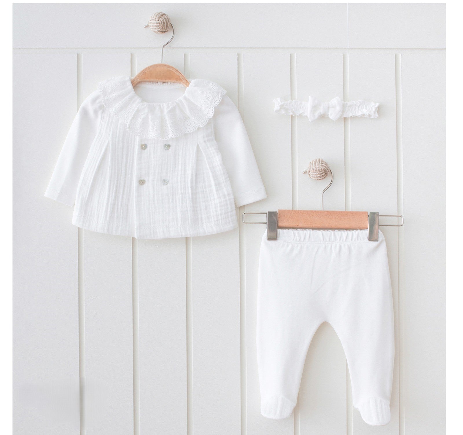 This Soft White 3-Piece Infant Set is designed to keep your little one comfortable and stylish. Made with soft, high-quality fabric, the set includes a top, pants, and headpiece for a complete outfit. Perfect for any occasion, this set is a must-have for any infant's wardrobe.
